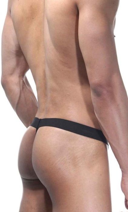 Трусы-стринги для мужчин на широкой резинке на поясе. Спереди трусы из тонкой гладкой ткани.