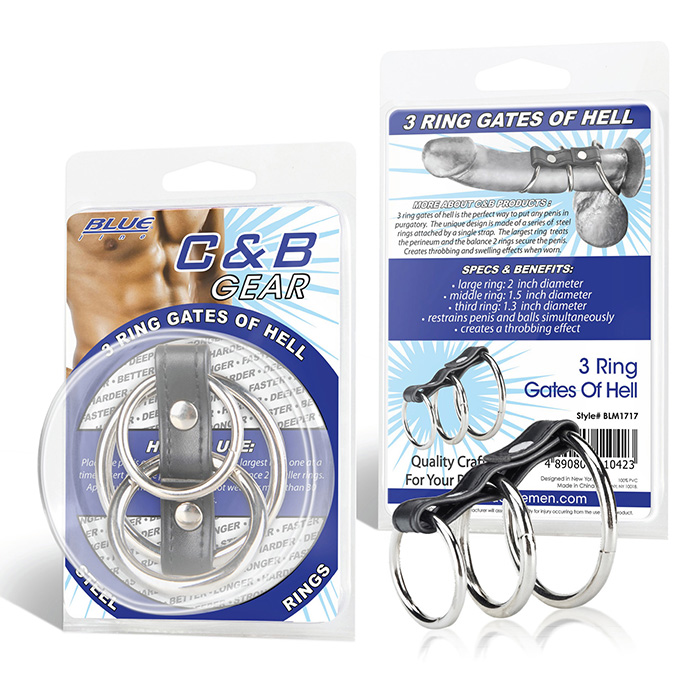 Хомут, состоящий из трех стальных колец разного диаметра. Данный хомут способствует увеличению пульсации и притока крови к пенису а также его набуханию. Наибольшее кольцо надевается на основание пениса и также фиксирует мошонку, два кольца поменьше фиксируются на самом пенисе. Диаметр колец 5 см., 4 см. и 3,2 см. Кольца скреплены ремешком из искусственной кожи с металлическими клепками. Упаковка: Блистер.