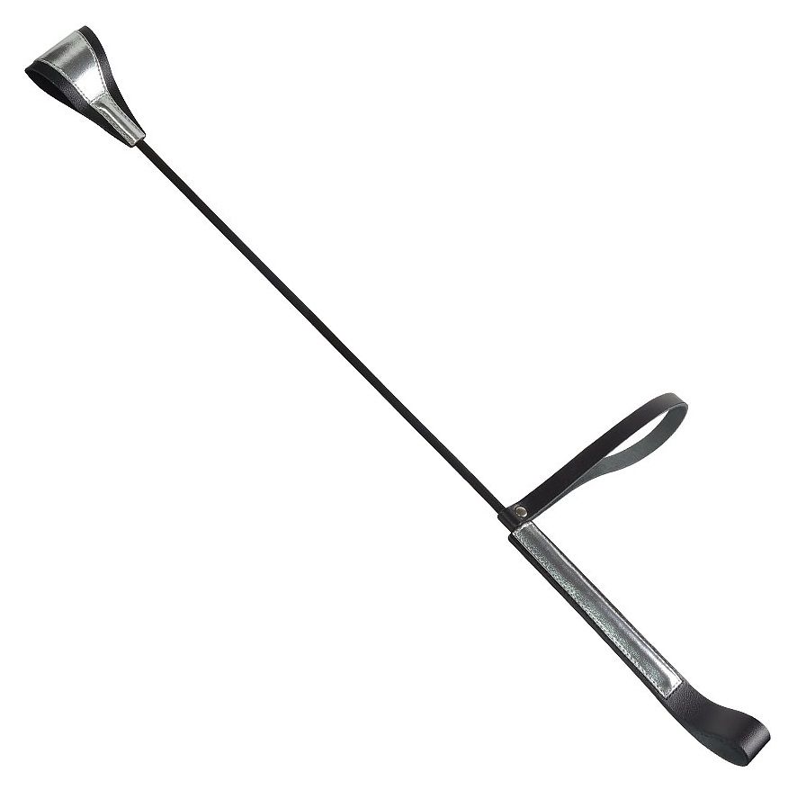 Основа стека - гибкий и прочный углепластик с черным нейлоновым плетёным покрытием. Гладкая и удобная цилиндрическая рукоять обтянута черной кожей с серебряной вставкой и имеет удобную черную кожаную петлю для фиксации изделия на запястье (темляк). Окончание-хлопушка выполнено в виде сложенной полоски из плотной натуральной высококачественной кожи черного цвета с серебряной контрастной отделкой.