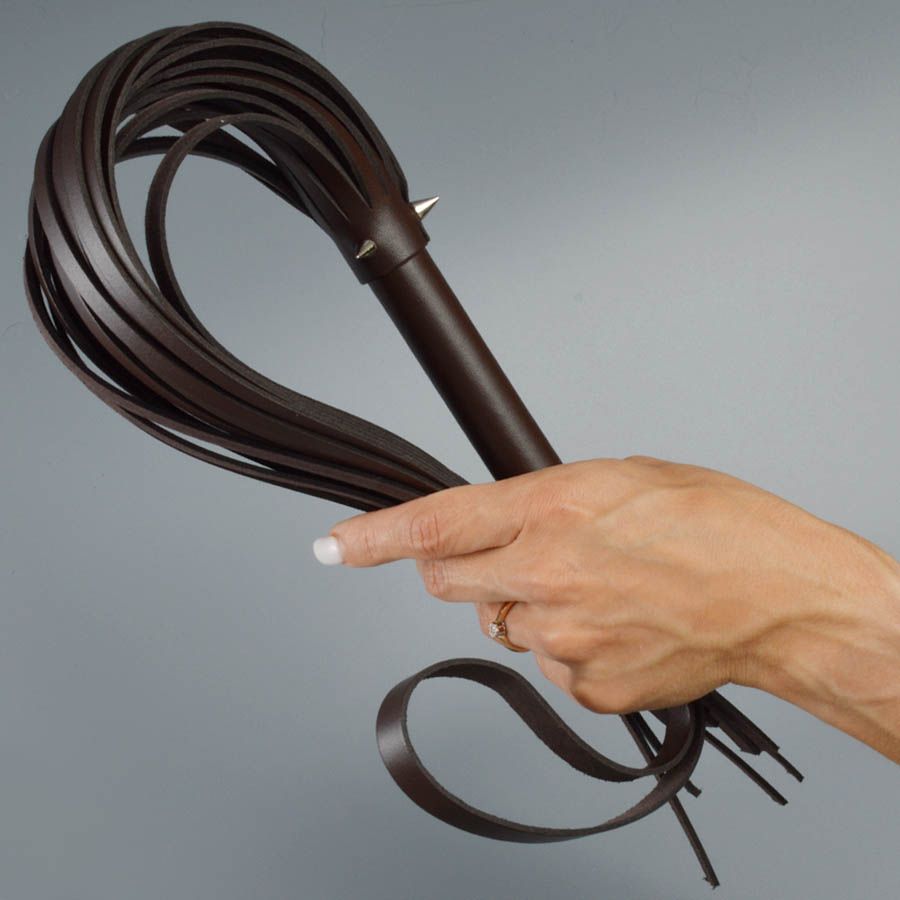 Плеть изготовлена из натуральной кожи коричневого цвета и украшена тремя металлическими шипами.