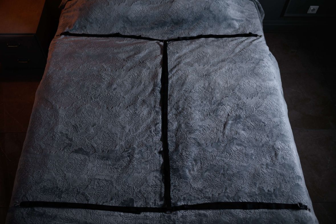 Набор на кровать Sex Game включает к себя пару наручников, пару оков на ноги и ленту для фиксации на кровать. Аксессуары выполнены из качественной натуральной замши и лаковой кожи, которые в сочетании друг с другом создают благородную комбинацию лакового блеска и бархатной текстуры. Комплект выполнен в черном цвете, подклад выполнен из нежнейшей овечьей кожи, очень приятной к телу. Обхват наручников регулируется от 15 до 21 см, обхват оков на ноги от 17 до 26 см. Лента-стропа очень прочная, сшита таким образом, чтобы Вы могли один раз настроить размер под свою кровать и в дальнейшем быстро и удобно фиксировать партнера. Регулировка как вертикальной, так и горизонтальных лент в диапазоне от 1,5 до 3 метров. Разместите ленту под матрасом, отрегулируйте размер и наслаждайтесь! Эти аксессуары невероятно комфортны в использовании и не оставят после себя никаких следов Вашей страстной игры!