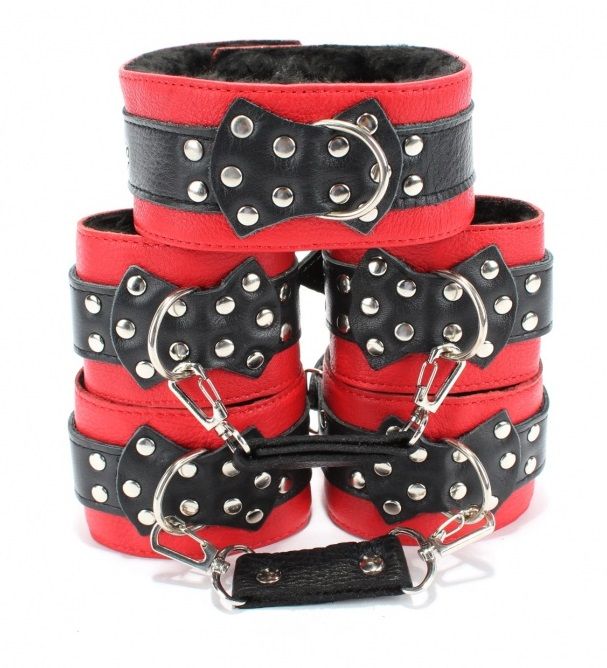 Набор из ошейника и фиксаторов для рук и ног из натуральной кожи прекрасно подойдет для фиксации партнера во время БДСМ-игр. В комплекте: ошейник, манжеты для рук и ног.