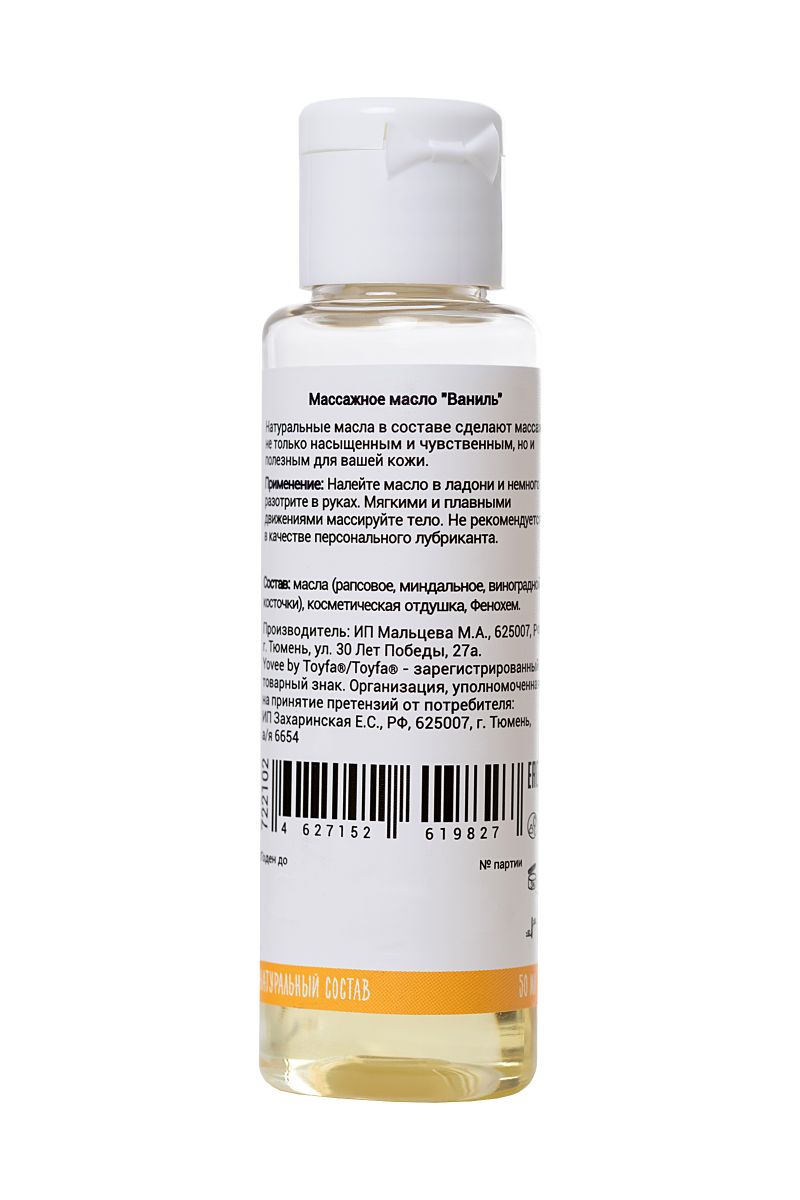 Натуральные масла в составе сделают массаж не только насыщенным и чувственным, но и полезным для вашей кожи. Отлично скользит и смывается водой. Приятный аромат ванили с лёгкостью расслабит и подготовит вас к чувственному массажу.Подготовьтесь к свиданию: После приёма расслабляющей ванны побалуйте себя ароматным массажем. Налейте масло в ладони и лёгкими массажными движениями массируйте своё тело. Спокойный аромат и натуральные масла в составе сделают вашу кожу приятной и мягкой.
