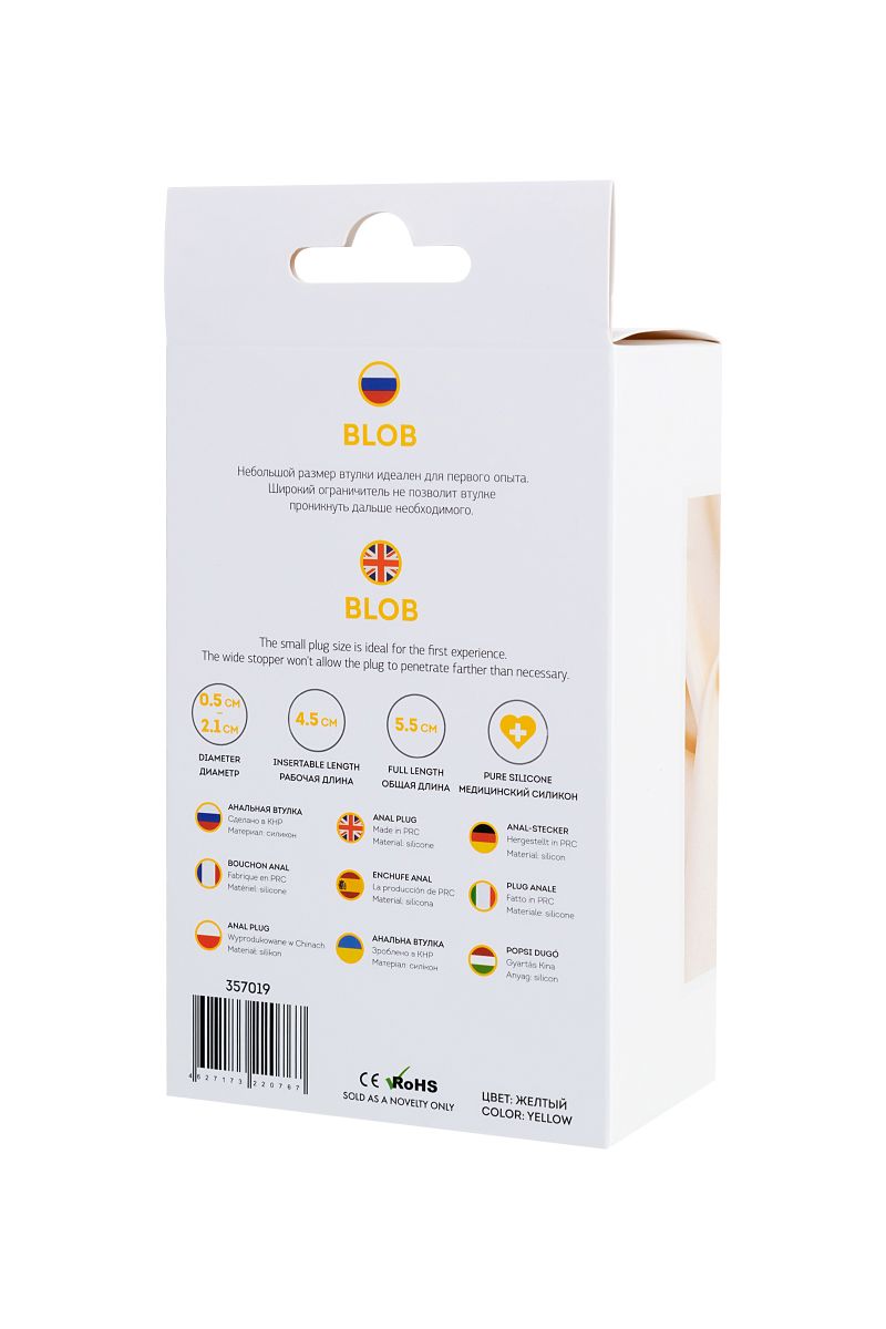 В секс-шопе Orgasmix вы можете купить Желтая анальная втулка Blob - 5,5 см. артикул 182981 по цене руб. с доставкой в город Хабаровск. Мы осуществляем доставку по всей России. Ближайшая дата отправки этого товара . Заказы принимаются круглосуточно через интернет-магазин.