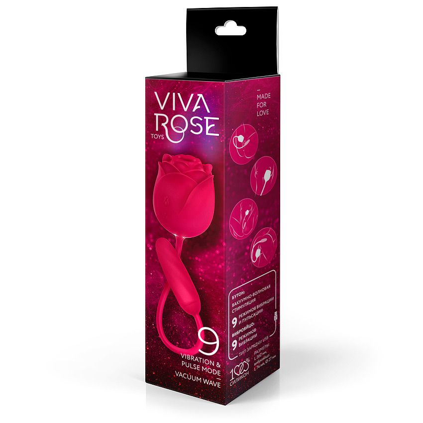 Интимный аксессуар в виде розы для сказочного наслаждения. Бутон ласкает соски, клитор, другие эрогенные зоны с помощью вакуумно-волновой стимуляции, 9 режимов вибрации и пульсации. А если убрать верхнюю часть цветка, то его вибрирующие и пульсирующие тычинки усиливают возбуждение. Вторая часть секс-игрушки (виброяйцо), стимулирует влагалище и анальное отверстие с помощью 9 разных режимов вибрации. Бутон и виброяйцо могут работать одновременно или по отдельности. Вкл./выкл. вакуумно-волнового режима, вибрации и пульсации в бутоне — нажать и 3 сек. удерживать соответствующую кнопку на корпусе изделия. Должен загореться/погаснуть световой индикатор. Переключение режимов — краткое нажатие той же кнопки. Вкл./выкл. вибрации в виброяйце — нажать и 3 сек. удерживать соответствующую кнопку на корпусе изделия. Должен загореться/погаснуть световой индикатор. Переключение виброрежимов — краткое нажатие той же кнопки. Вибрация ощущается и в бутоне, и в соединительном шнурке. Длина виброяйца - 7,4 см., диаметр - 2,7 см.