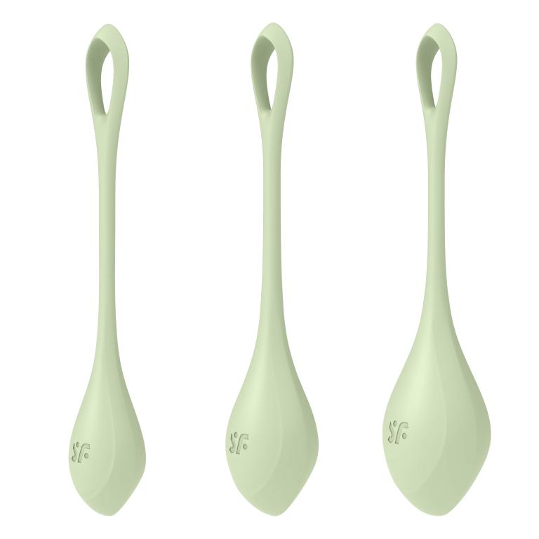 Yoni Power 2 – набор из трех одиночных шариков разного веса. Идеальные вагинальные тренажеры для начинающих, чтобы повысить тонус интимных мышц и снизить вероятность болезней мочеиспускательной системы. Удобная петелька позволяет легко извлечь тренажер при необходимости в любой момент. Для комфортности введения и получения максимально приятных ощущений рекомендуется использовать смазку на водной основе или гибрид. Общая длина - 12, 13 и 14 см. Диаметр - 2, 2,5 и 3 см. Длина петельки - 8 см. Вес - 21, 45 и 75 гр.